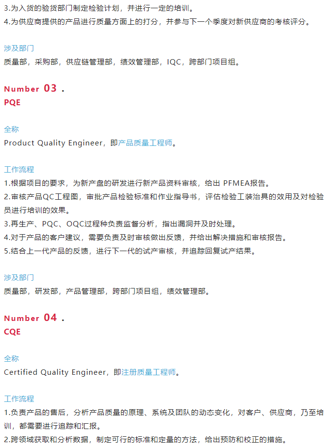 DQE、SQE、PQE、CQE工作流程与职责。